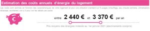 L’estimation de prix en euros environ plus ou moins 15% de la facture d’énergie annuelle du bien sera affichée sur le rapport.